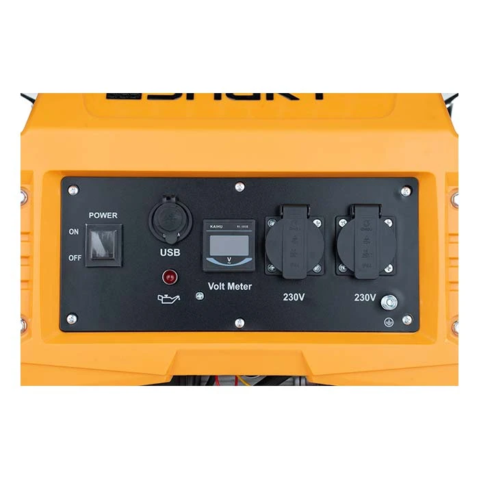 - Wyposażony jest w dwa gniazda 230 V, zabezpieczenie termiczne, oraz czujnik oleju, który przy niedoborze oleju wyłącza silnik