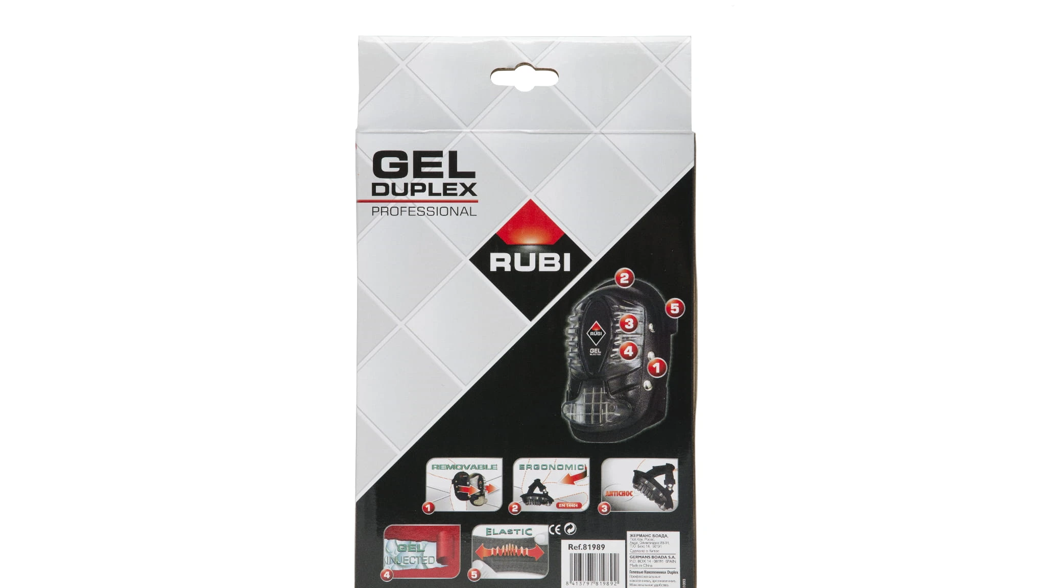 W ergonomicznych i bardzo wygodnych nakolannikach RUBI GEL DUPLEX połączono użycie twardych materiałów na zewnątrz do ochrony przed uderzeniem i nierównościami podłoża oraz miękkich materiałów od wewnątrz, które przystosowują się do kształtu ciała użytkownika.