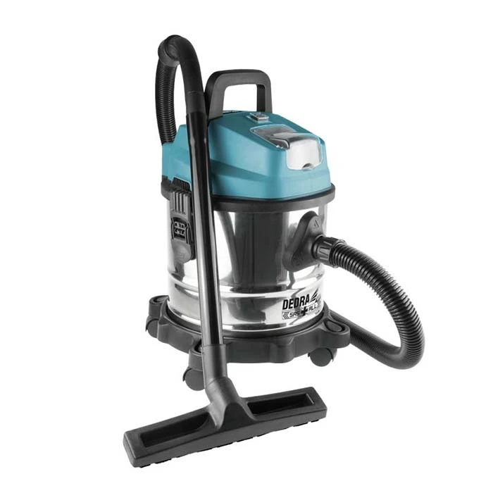 Dedra DED7175 to akumulatorowy bezszczotkowy odkurzacz, który pracuje na sucho i mokro. Pojemność zbiornika. który jest ze stali nierdzewnej wynosi 15l. Podciśnienie 16 kPa, Średnica rury: 32 mm. Waga: 6,5 kg