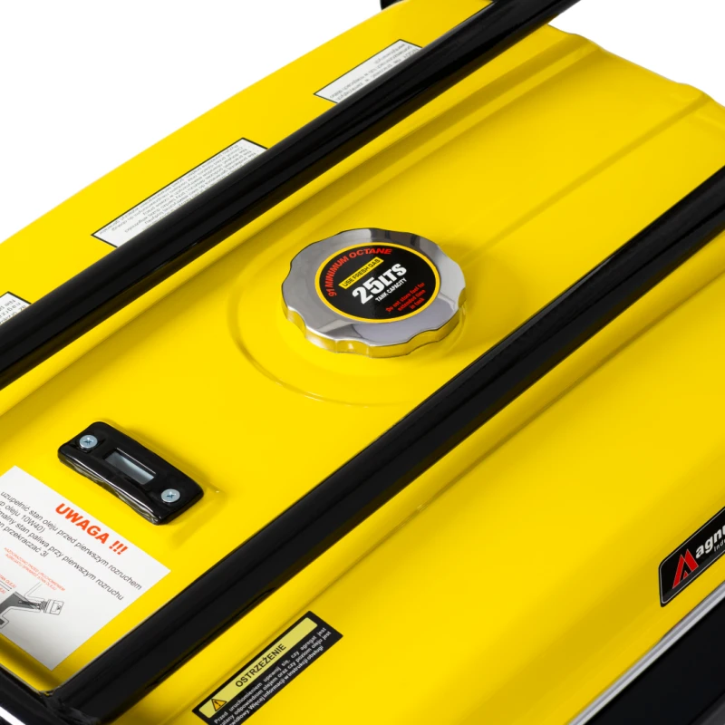 - Pojemny zbiornik paliwa 25 L – do 9 godzin pracy przy 50% obciążeniu.