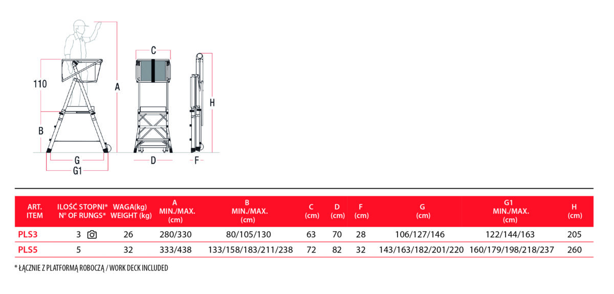 - 1x Bezpieczny podest roboczy 5 stopni Faraone PLS5