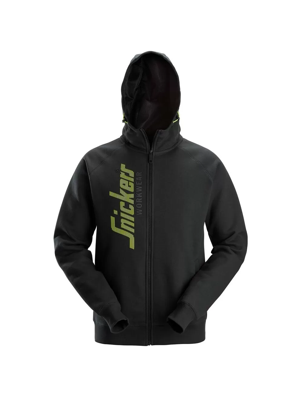 Bluza z kapturem z nadrukiem Snickers Workwear i wygodnym, wysokim kołnierzem. Wyposażona w dwie kieszenie z podszewką z siateczki. Trwała i wygodna bluza z kapturem, zapinana na suwak, idealna do codziennego użytku. Bluza z kapturem wykonana jest z grubej mieszanki bawełniano-poliestrowej ze szczotkowanym wnętrzem, które zapewnia ciepło i komfort. Dodatkowo bluza ma raglanowe rękawy i wyłożony siateczką kaptur ze sznurkiem ściągającym w celu optymalnego dopasowania. Bluza z kapturem, zapinana na suwak, posiada również dwie kieszenie z podszewką z siateczki, przedni suwak z gumowym uchwytem oraz dzielone logo Snickers Workwear z nadrukiem z utwardzanej pianki w kolorze neonowej żółci.