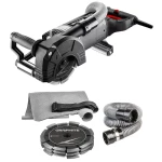 Urządzenie pracuje z prędkością 8000 obr./min i posiada system łagodnego rozruchu, co ułatwia start i poprawia kontrolę. Stabilne prowadzenie zapewniają metalowe rolki, a system odprowadzania/odsysania pyłu pomaga utrzymać porządek na stanowisku. Całość dostarczana jest w walizce ułatwiającej transport i przechowywanie.