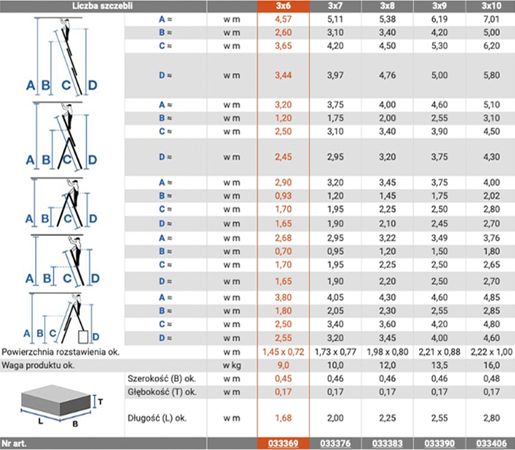- Specjalne haki zapobiegające samoczynnemu złożeniu/rozłożeniu się drabiny podczas używania i transportu