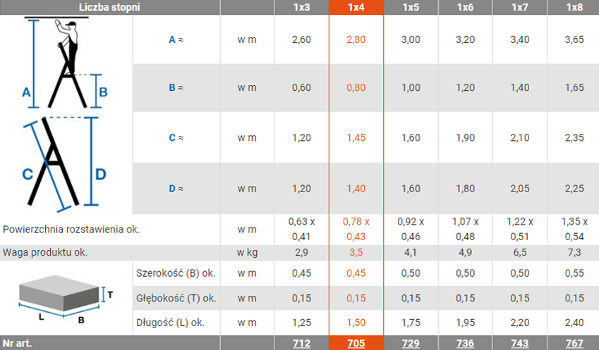 Powierzchnia rozstawienia ok. - 0,78 x 0,43