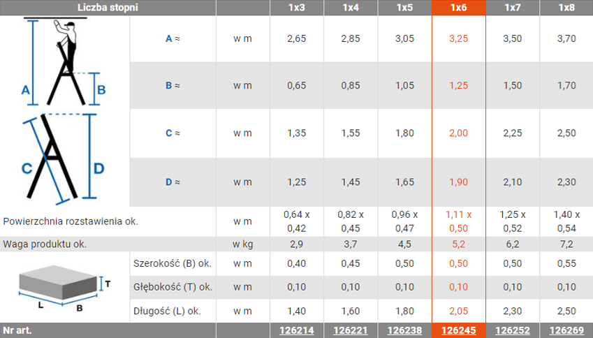 - Drabina jednostronna wyposażona w stalową platformę o szerokości 250 mm