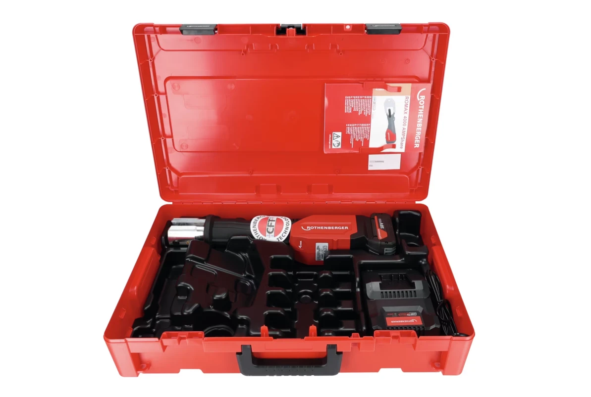 Zestaw ROMAX 4000 EU AMPShare zawiera akumulator o pojemności 4 Ah. Elektrohydrauliczna zaciskarka akumulatorowa ROMAX 4000 AMPShare jest idealna do zgodnego z systemem zaciskania złączek wykonanych z metalu, tworzyw sztucznych i wielowarstwowych rur kompozytowych (MSR) do 110 mm. ROMAX 4000 AMPShare zaciska złączki z siłą tłoka 32-34 kN i cyklem zaciskania trwającym 5 sekund. Niska waga 3,6 kg i zrównoważony rozkład ciężaru umożliwiają ergonomiczną i energooszczędną pracęnawet przez długi czas. Technologia Constant Force Technology (CFT) gwarantuje stałą siłę zacisku podczas całego cyklu zaciskania. Wydłużony interwał międzyserwisowy wynoszący 40 000 cykli zaciskania / 2 lata zapewnia wysoką wydajność.
