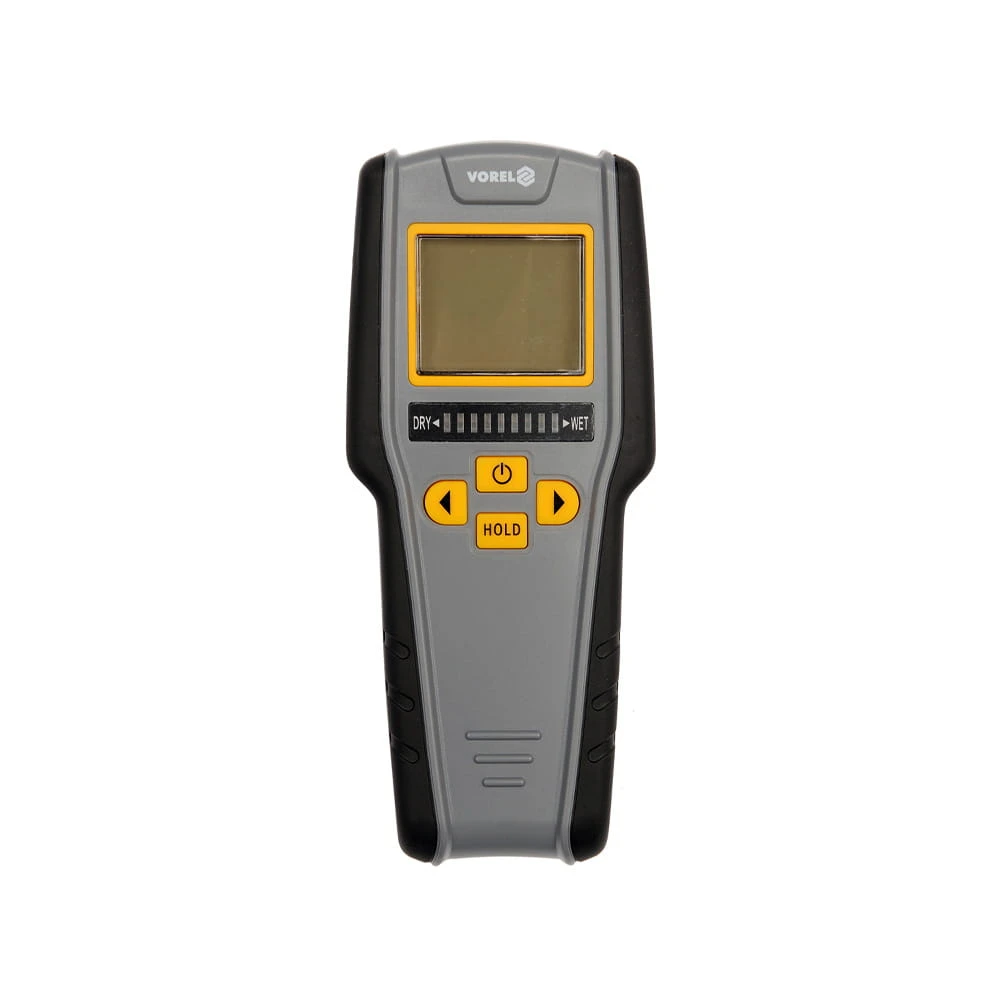 - Zakres pomiarowy: 0 - 53% (drewno miękkie) / 0 - 35% (drewno twarde) / mur i ściany - pomiar względny
