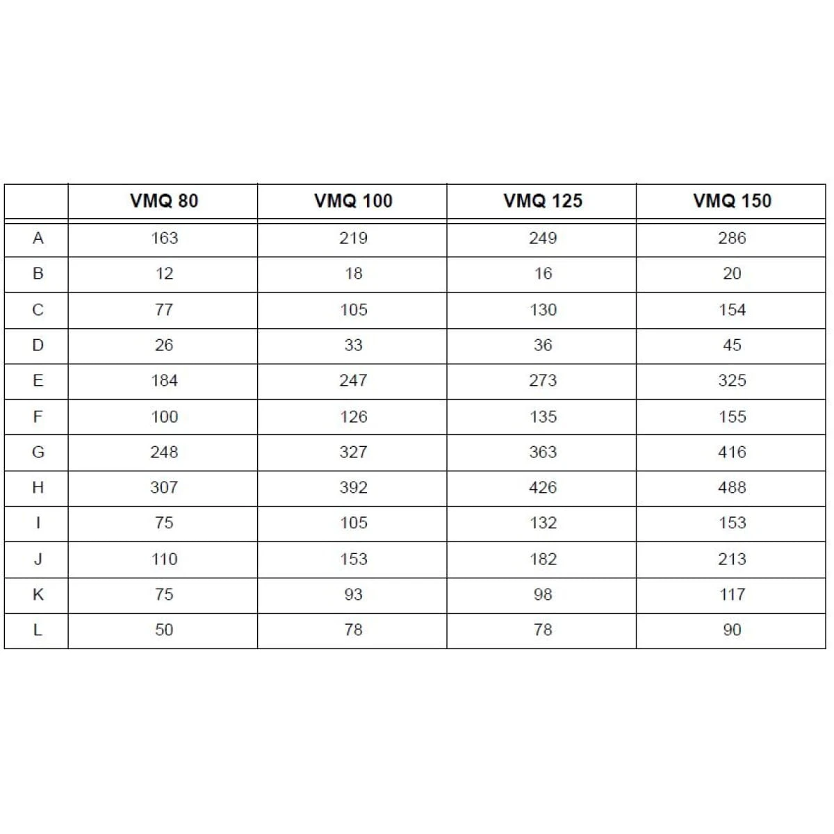 Dane techniczne modelu VMQ 80: