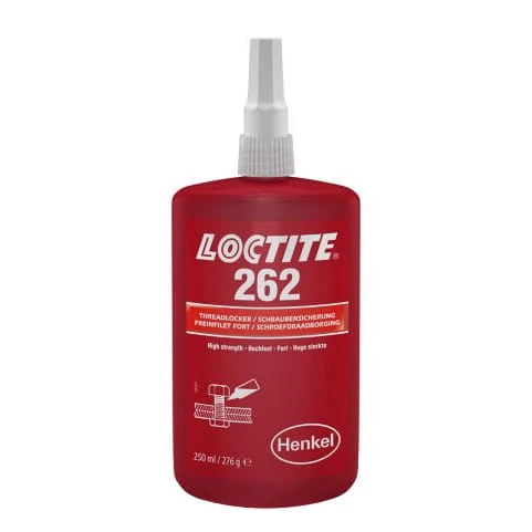 Klej LOCTITE 262 to jednoskładnikowy, metakrylanowy produkt anaerobowy, zaprojektowany do zabezpieczania połączeń gwintowych. Po utwardzeniu tworzy trwałą i wytrzymałą strukturę, która chroni złącza, nakrętki i śruby przed poluzowaniem, które może być spowodowane różnymi niepożądanymi zjawiskami fizycznymi, takimi jak drgania, wibracje, wstrząsy, różna rozszerzalność temperaturowa materiałów złącza, relaksacja napięcia śruby oraz korozja.