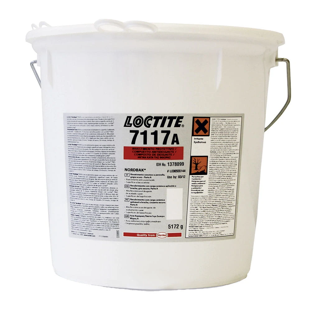 LOCTITE 7117 to dwuskładnikowa, bezrozpuszczalnikowa powłoka epoksydowa wzbogacona wypełniaczem ceramicznym. Produkt ten jest przeznaczony do ochrony powierzchni metalowych przed działaniem substancji ścierających i korozyjnych. Można go stosować jako gładką powłokę zabezpieczającą metalowe powierzchnie lub jako zewnętrzną warstwę o niskim współczynniku tarcia, nakładaną na powłoki odporne na zużycie Loctite Nordbak.