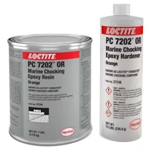 LOCTITE 7202 Marine Chocking to dwuskładnikowy epoksydowy podkład ustalający, zatwierdzony przez Rejestr Lloyda i Amerykańskie Biuro Okrętowe. Jest idealny do instalowania głównych silników napędowych i innych urządzeń dzięki wysokiej wytrzymałości na ściskanie, co pozwala na wytrzymanie maksymalnych obciążeń.