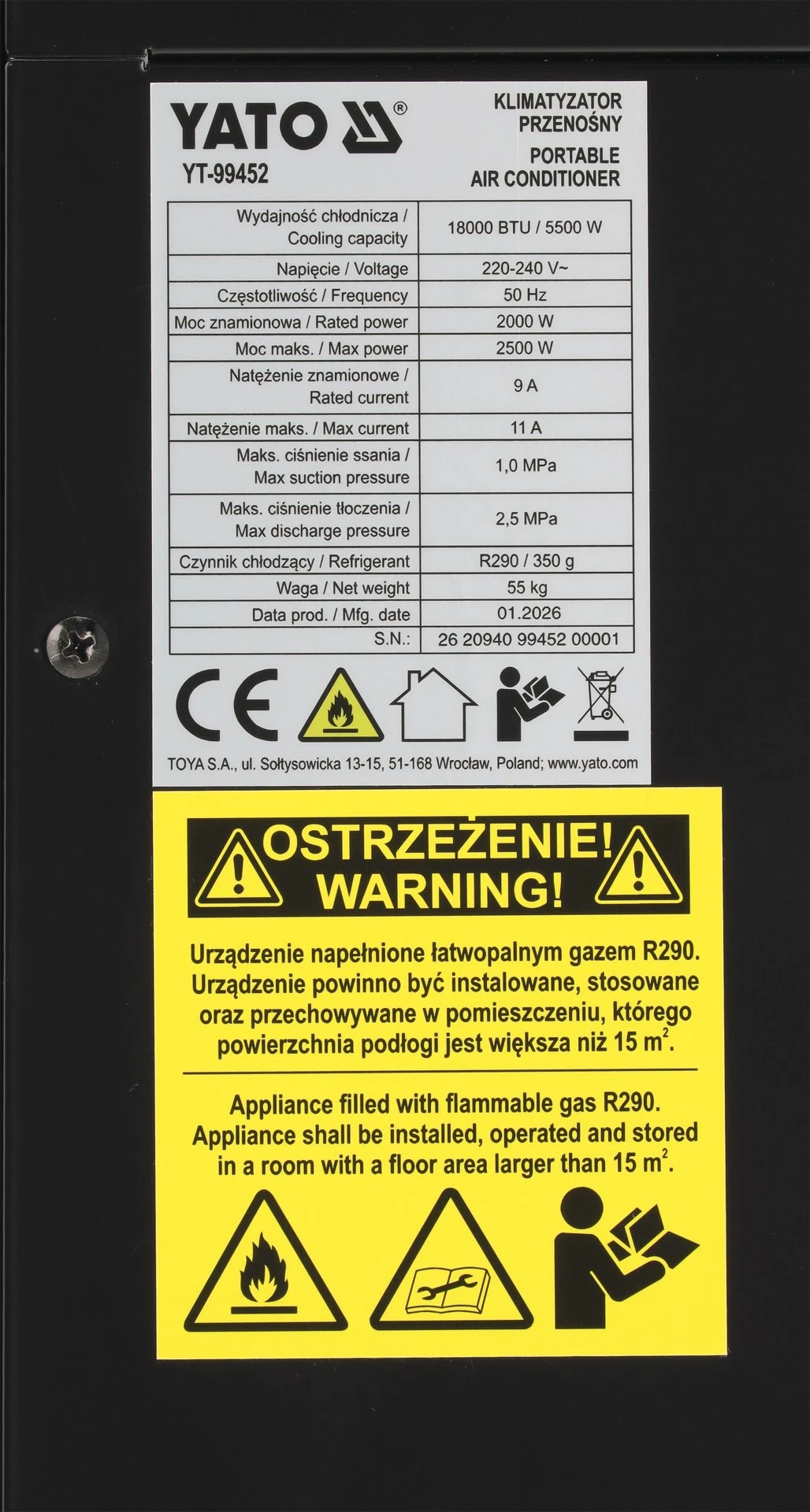 Klimatyzator punktowy przenośny 5,5 kW Yato YT-99452