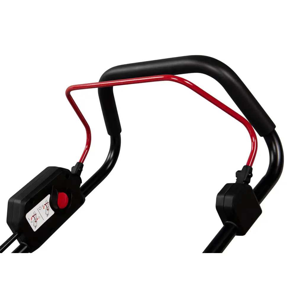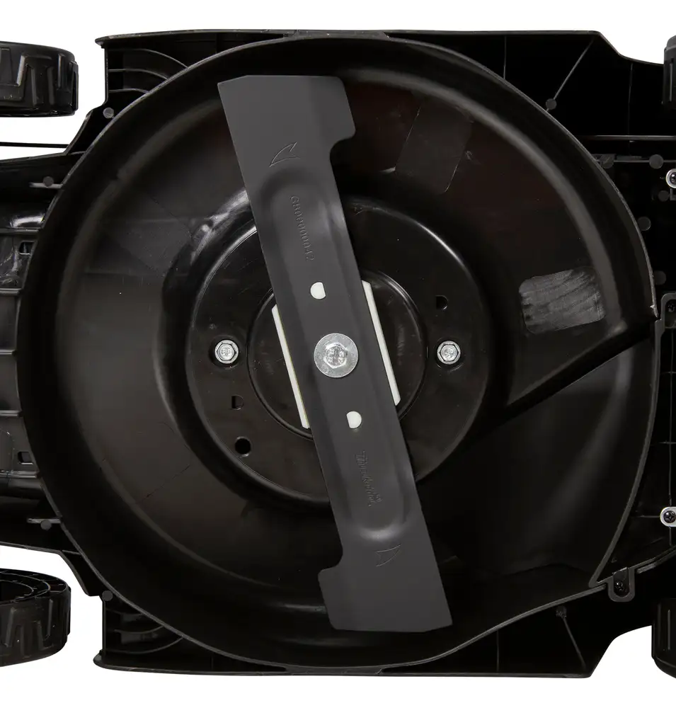 Obudowa wykonana z polipropylenu znacząco obniża wagę urządzenia, jednocześnie zwiększając jego mobilność. Szerokie koła ułatwiają prowadzenie kosiarki nawet na nierównym lub grząskim terenie, a kompaktowa budowa pozwala na wygodne manewrowanie w ciasnych przestrzeniach.