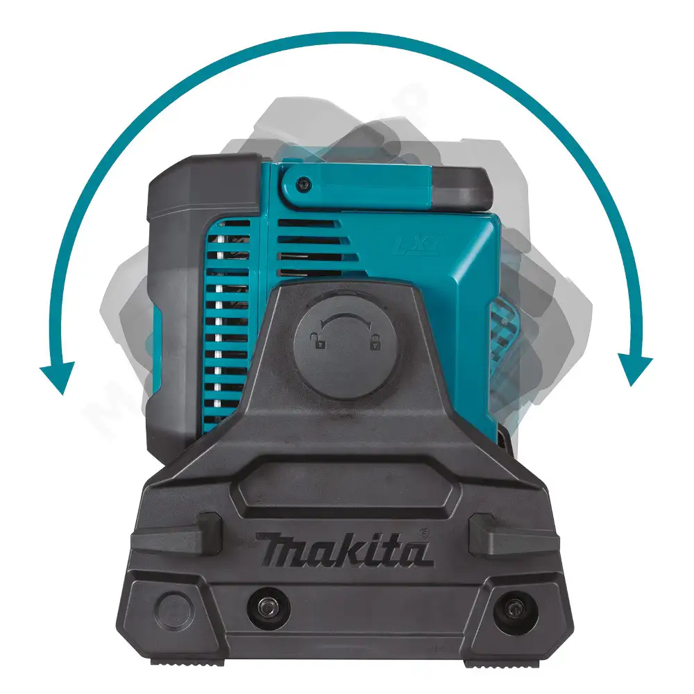 Wydajna lampa budowlana DML809 z 96 diodami LED, z trzema ustawieniami jasności. Zasilana akumulatorami 14,4V i 18V LXT® oraz sieciowo. Możliwość zamontowania na statywie (opcja). Czas pracy z dwoma akumulatorami 6,0 Ah wynosi około. 1,7 godziny ciągłego świecenia w trybie wysokim. Posiada funkcję pamięci zapamiętującą ostatni wybrany stopień oświetlenia oraz sygnalizuje przed rozładowaniem się akumulatora.