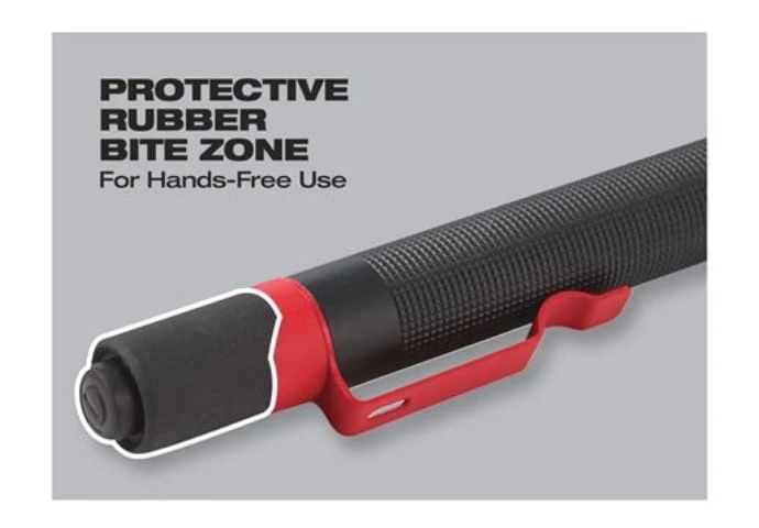 - Posiada ochronną gumową nakładkę, która służy do trzymania latarki w zębach przy okazjonalnym używaniu jej bez użycia rąk