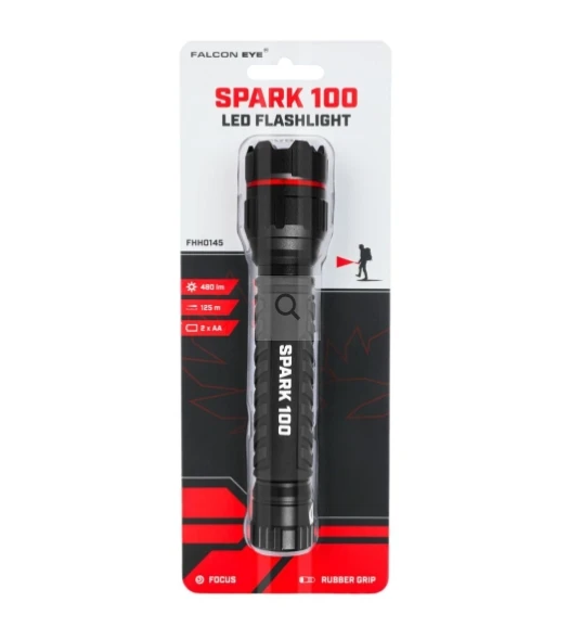 SPARK 100 to bateryjna (2 x AA) latarka ręczna z gumowaną rękojeścią i funkcją Fokus.