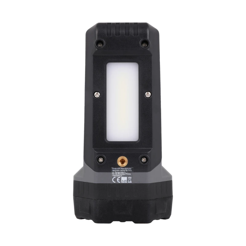 Wbudowany u podstawy panel COB LED zapewnia dodatkową funkcjonalność, emitując zarówno białe, jak i pomarańczowe światło sygnalizacyjne. Pomarańczowe migające światło sprawdza się doskonale w sytuacjach ostrzegawczych, zwiększając widoczność użytkownika np. w strefach pracy lub w miejscach o wysokim ryzyku. -