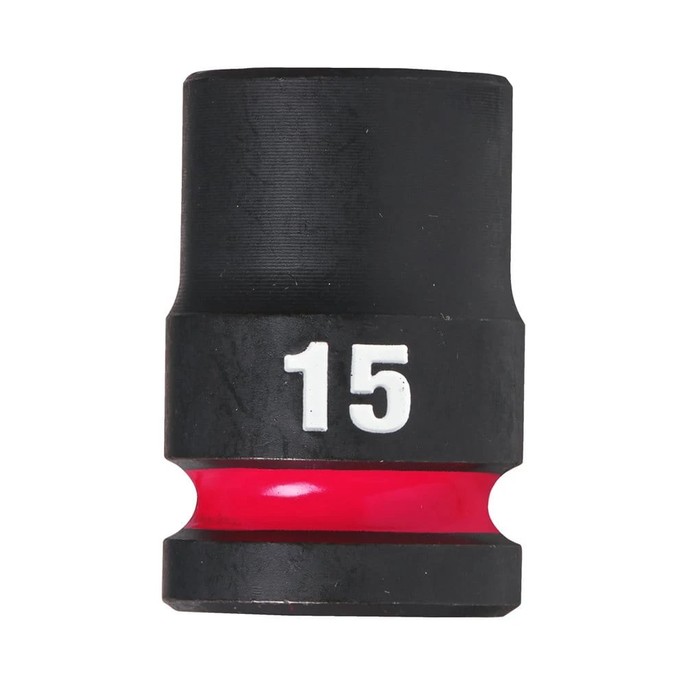 Nasadka udarowa 1/2'' 15mm Milwaukee to wysokiej jakości narzędzie do pracy z elektronarzędziami udarowymi. Jest wykonana ze stali chromowo-molibdenowej, która zapewnia wysoką wytrzymałość i odporność na zużycie. Nasadka ma długość 78 mm i sześciokątny profil, który zapobiega poślizgowi podczas mocowania lub odkręcania śrub i nakrętek. Nasadka jest oznaczona laserowo rozmiarem i symbolem Milwaukee, co ułatwia identyfikację i doboru odpowiedniej nasadki.