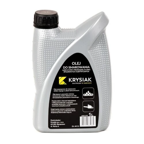 Olej do pił KRYSIAK OL AKS1 1L to środek przeznaczony do smarowania łańcuchów oraz prowadnic pilarek spalinowych i elektrycznych. Został opracowany na bazie odpowiednio dobranej kompozycji olejów mineralnych i komponentów pochodzenia naturalnego, dzięki czemu zapewnia skuteczne smarowanie w różnych warunkach pracy. Produkt wspiera prawidłowe działanie układu tnącego, ogranicza zużycie elementów i pomaga wydłużyć żywotność sprzętu.