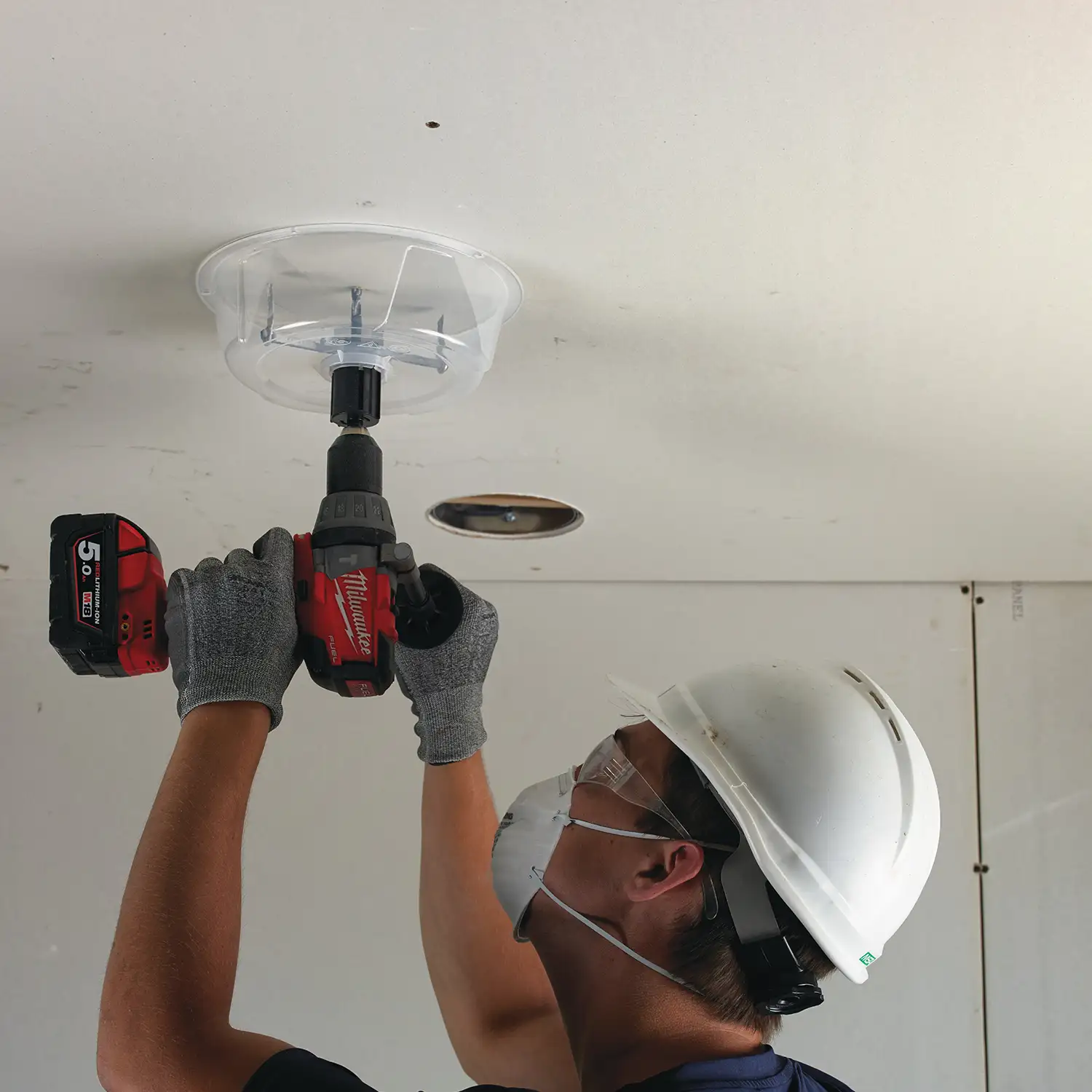 - Osłona przeciwpyłowa zbierająca 100% pyłu podczas wiercenia w suficie.