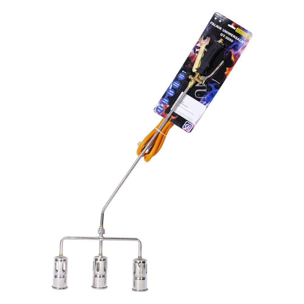 Łatwy w obsłudze uniwersalny palnik propanowo-powietrzny 3-dyszowy GT-3050 marki MAGNUM zasilany gazem propan-butan charakteryzuje się szerokim zakresem zastosowań. Idealnie nadaje się do prac dekarskich przy układaniu papy termozgrzewalnej oraz przy podobnych pracach w których potrzebne jest zastosowanie płomienia o dużej energii np: