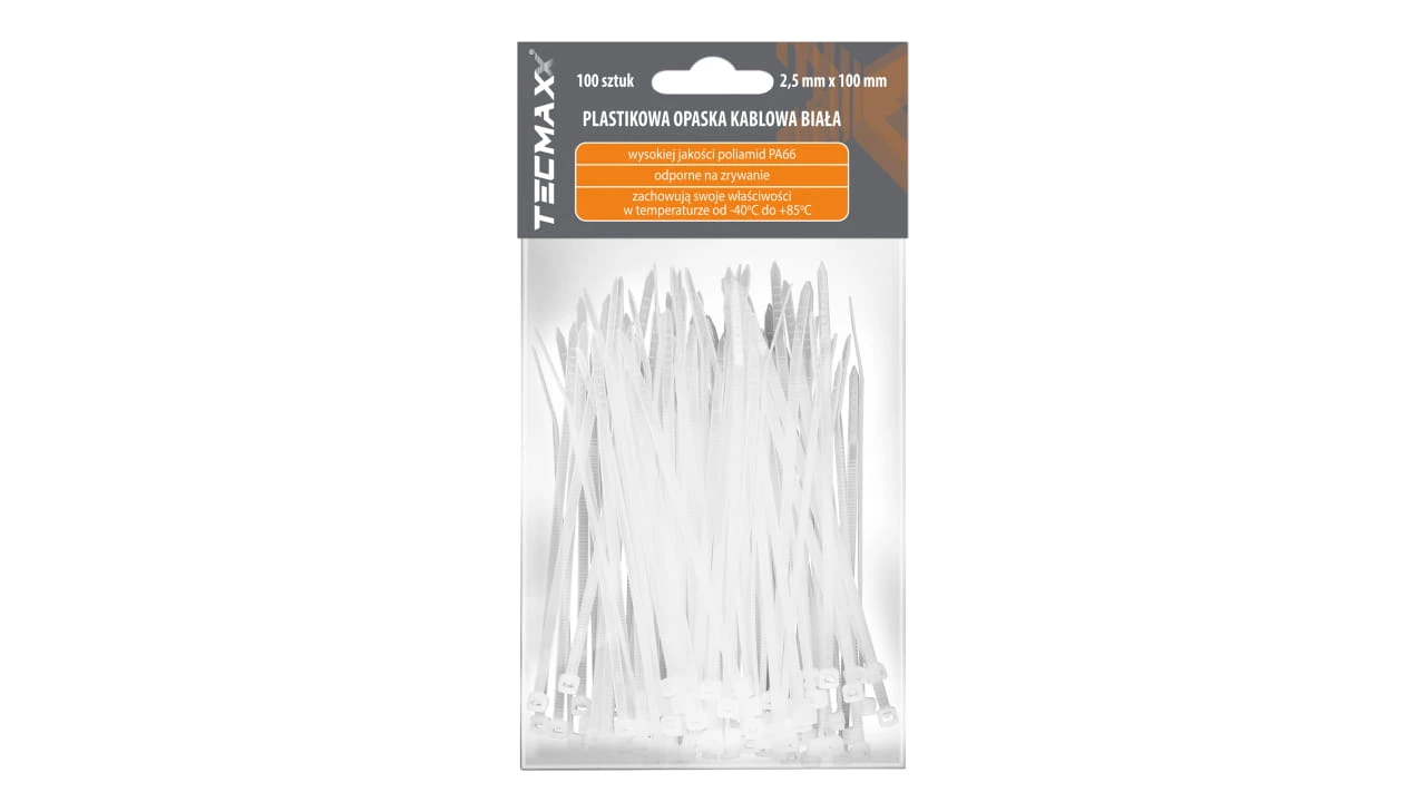 Wykonane z wysokiej jakosci poliamidu PA66. Certyfikat UL. Zachowuja swojewłasciwosci w duzym zakresie temperatur od -40oC do +85oC. Klasa palnosci94V-2. Szerokie spektrum zastosowan np. spinanie i wiazanie wiazekprzewodów, elementów montazowych. Produkt jednorazowego uzycia.Dostepny w róznych rozmiarach.
