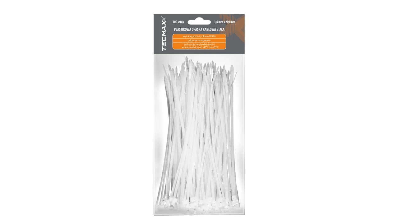 Wykonane z wysokiej jakosci poliamidu PA66. Certyfikat UL. Zachowuja swojewłasciwosci w duzym zakresie temperatur od -40oC do +85oC. Klasa palnosci94V-2. Szerokie spektrum zastosowan np. spinanie i wiazanie wiazekprzewodów, elementów montazowych. Produkt jednorazowego uzycia.Dostepny w róznych rozmiarach.