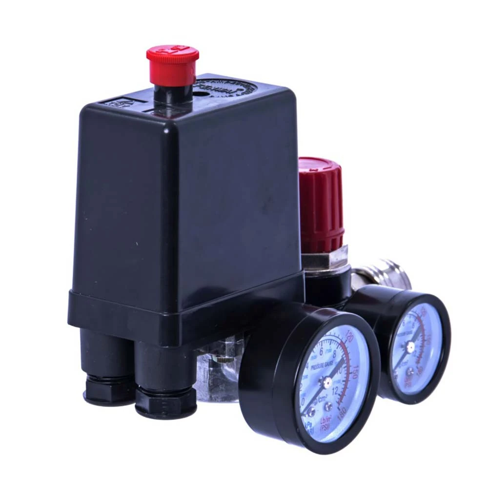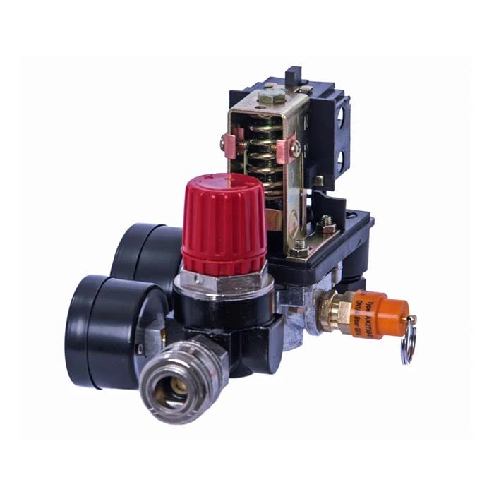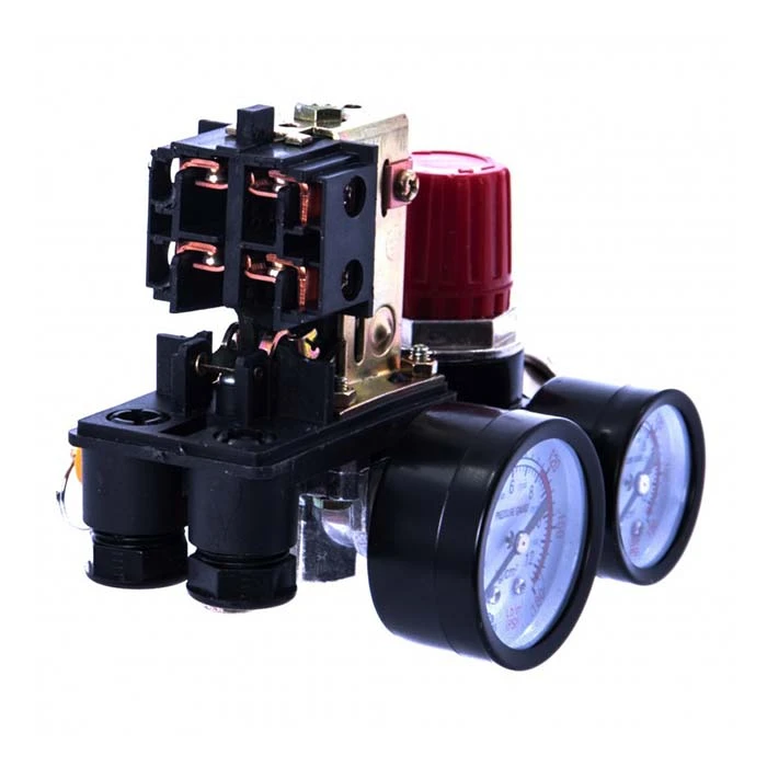 Przełącznik ciśnieniowy marki MAGNUM, używany do utrzymywania ciśnienia w zbiorniku kompresora pomiędzy zadaną górną i dolną wartością ciśnienia. Sterownik przeznaczony do silników jednofazowych.