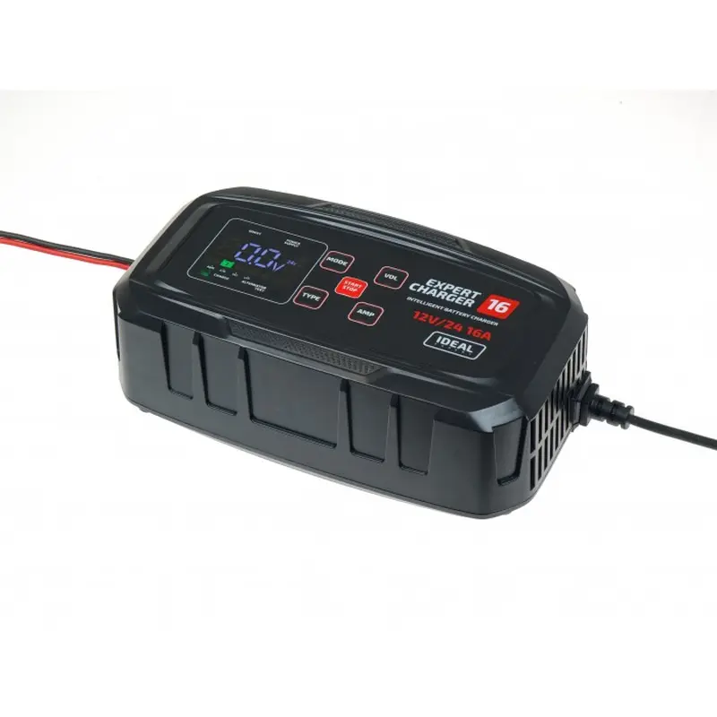 IDEAL Expert Charger 16 to zaawansowany prostownik mikroprocesorowy przeznaczony do ładowania akumulatorów 12V oraz 24V w samochodach osobowych, dostawczych, maszynach rolniczych, motocyklach, a także w pojazdach wyposażonych w system Start-Stop. Urządzenie automatycznie analizuje stan akumulatora i dobiera odpowiedni tryb ładowania, zapewniając pełne bezpieczeństwo, wysoką skuteczność i wygodę pracy.