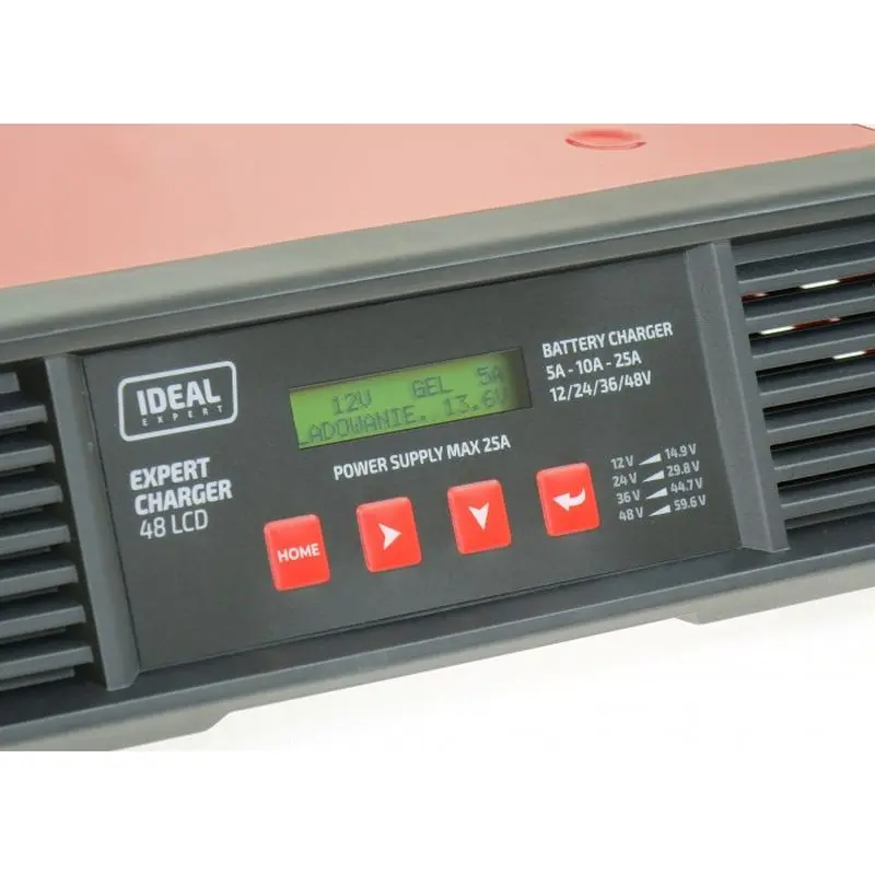 IDEAL Expert Charger 48 to nowoczesny, w pełni automatyczny prostownik mikroprocesorowy, zaprojektowany do ładowania i podtrzymywania akumulatorów w pojazdach o napięciu 12V, 24V, 36V oraz 48V.