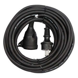 Wysokiej klasy przedłużacz izolowany o długości 20m. Przewód wykonany jest z 3 żył miedzianych o przekroju 1,5mm² każdy. Taki przekrój przewodu umożliwia podłączenie do tych przedłużaczy urządzeń często używanych na budowie, w warsztacie czy zakładzie produkcyjnym. Przewody pokryte są izolacją wykonaną z gumy naturalnej H05RR-F, która charakteryzuje się wysoką odpornością na uszkodzenia mechaniczne, czynniki atmosferyczne, substancje chemiczne (oleje chłodząco-smarujące, benzynę, czy alkohole etylowe, metylowe). Taka izolacja zapewnia napięcie znamionowe 300V / 500V. Ponadto przedłużacz wykonany jest wg normy IP 44. Dzięki zastosowaniu pyło oraz bryzgoszczelnych wtyczek pozwala na wykorzystanie tych przedłużaczy zarówno wewnątrz pomieszczeń jak i na zewnątrz, np. na budowie, w ogrodzie, na placach przed zakładami produkcyjnymi. Dzięki bryzgoszczelności oraz pyłoszczelności zapewnia doskonałą ochronę przed wilgocią czy pyłem i piaskiem.Maksymalna moc podłączanego urządzenia: 3680 W