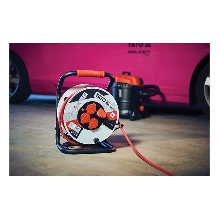 Przedłużacz bębnowy Yato YT-8106 to niezawodne rozwiązanie do zasilania różnorodnych urządzeń elektrycznych na budowie, w warsztacie czy w ogrodzie. Dzięki długości 30 metrów oraz solidnej konstrukcji, przedłużacz umożliwia zasilanie urządzeń w miejscach oddalonych od źródła prądu. Wyposażony w cztery pyło- i bryzgoszczelne gniazda oraz dodatkowe zabezpieczenia termiczne i ochronę przed dziećmi, ten przedłużacz zapewnia bezpieczeństwo oraz komfort użytkowania, zarówno wewnątrz, jak i na zewnątrz.