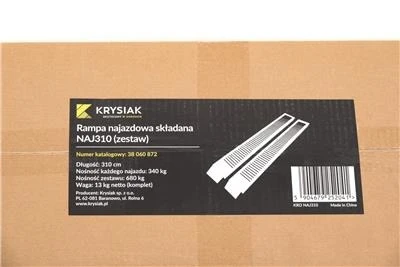 Najazd łamany NAJ310 do traktorków 310 cm to solidna i funkcjonalna rampa przeznaczona do bezpiecznego załadunku maszyn ogrodowych oraz sprzętu transportowego. Wykonana z lekkiego, a jednocześnie wytrzymałego aluminium, zapewnia wygodę użytkowania oraz wysoką odporność na uszkodzenia i korozję. Składana konstrukcja ułatwia przechowywanie i transport, czyniąc ją praktycznym rozwiązaniem dla wymagających użytkowników.