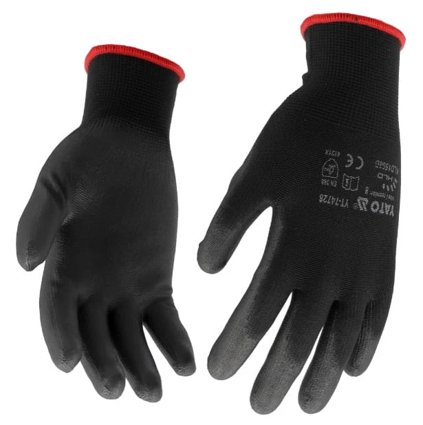 Rękawice Robocze Nylon/PU – Czarne, Rozmiar 9