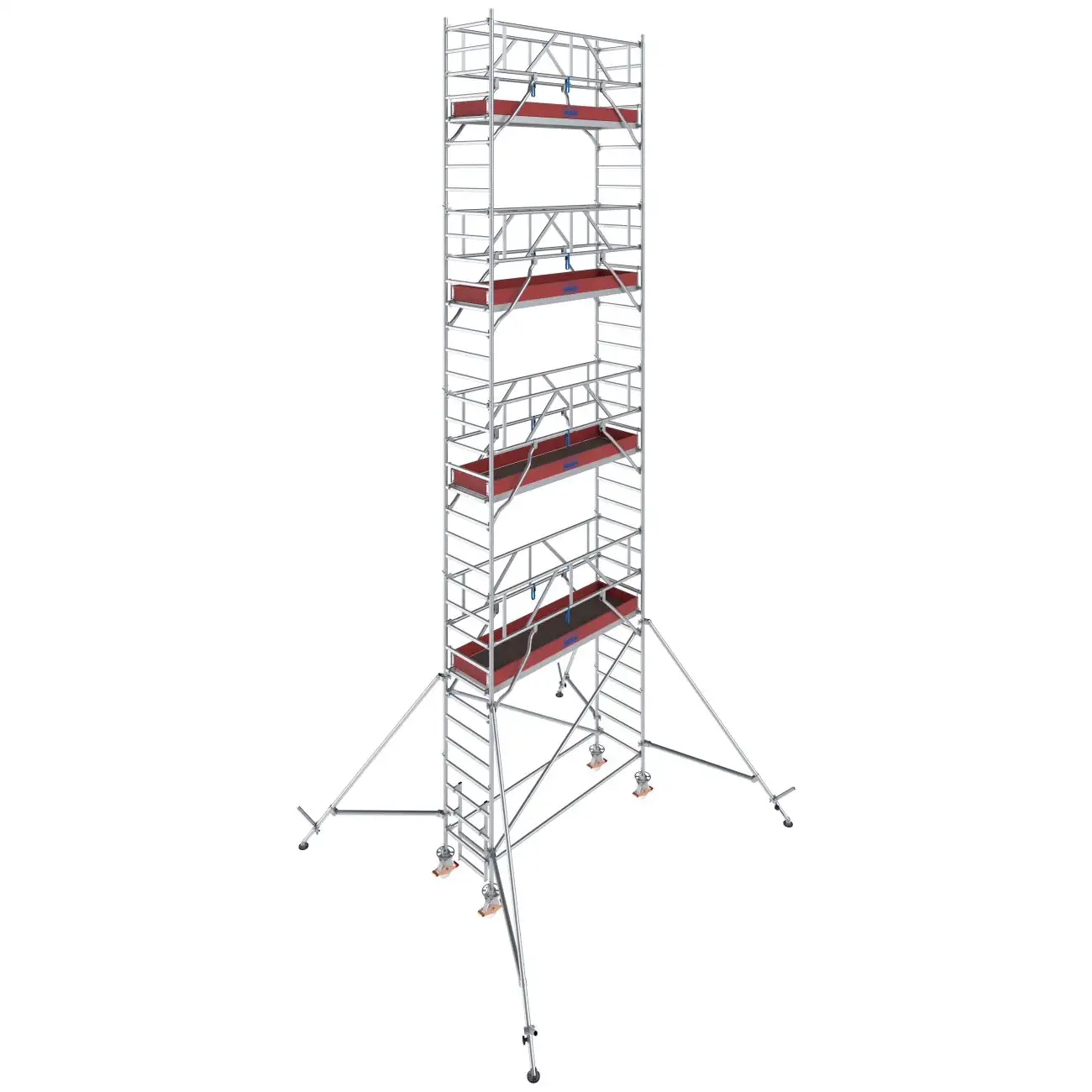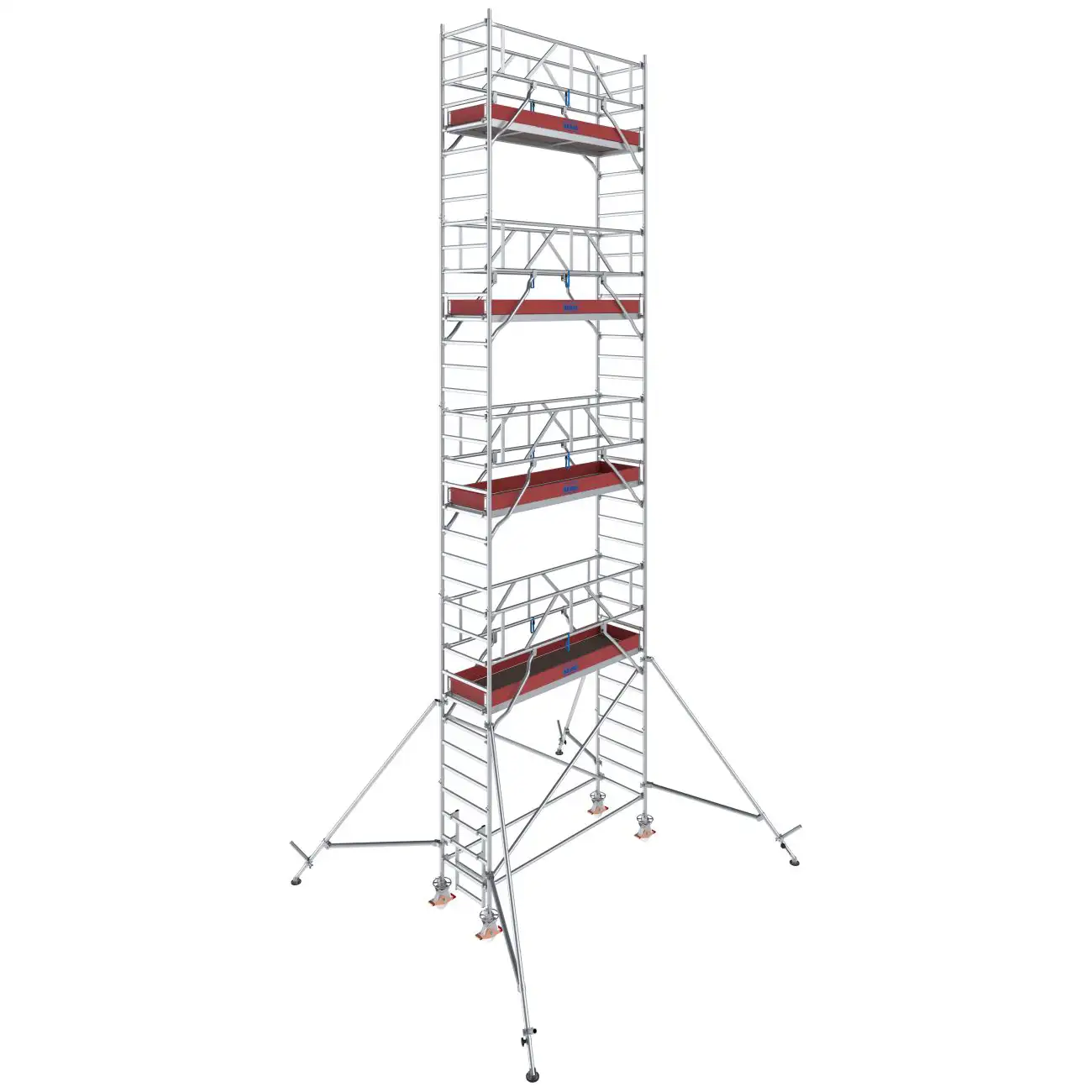 - Uniwersalne aluminiowe rusztowanie jezdne do prac prowadzonych na wysokości do 14,40 m (przy długości pola roboczego 2,00 m do 12,30 m)
