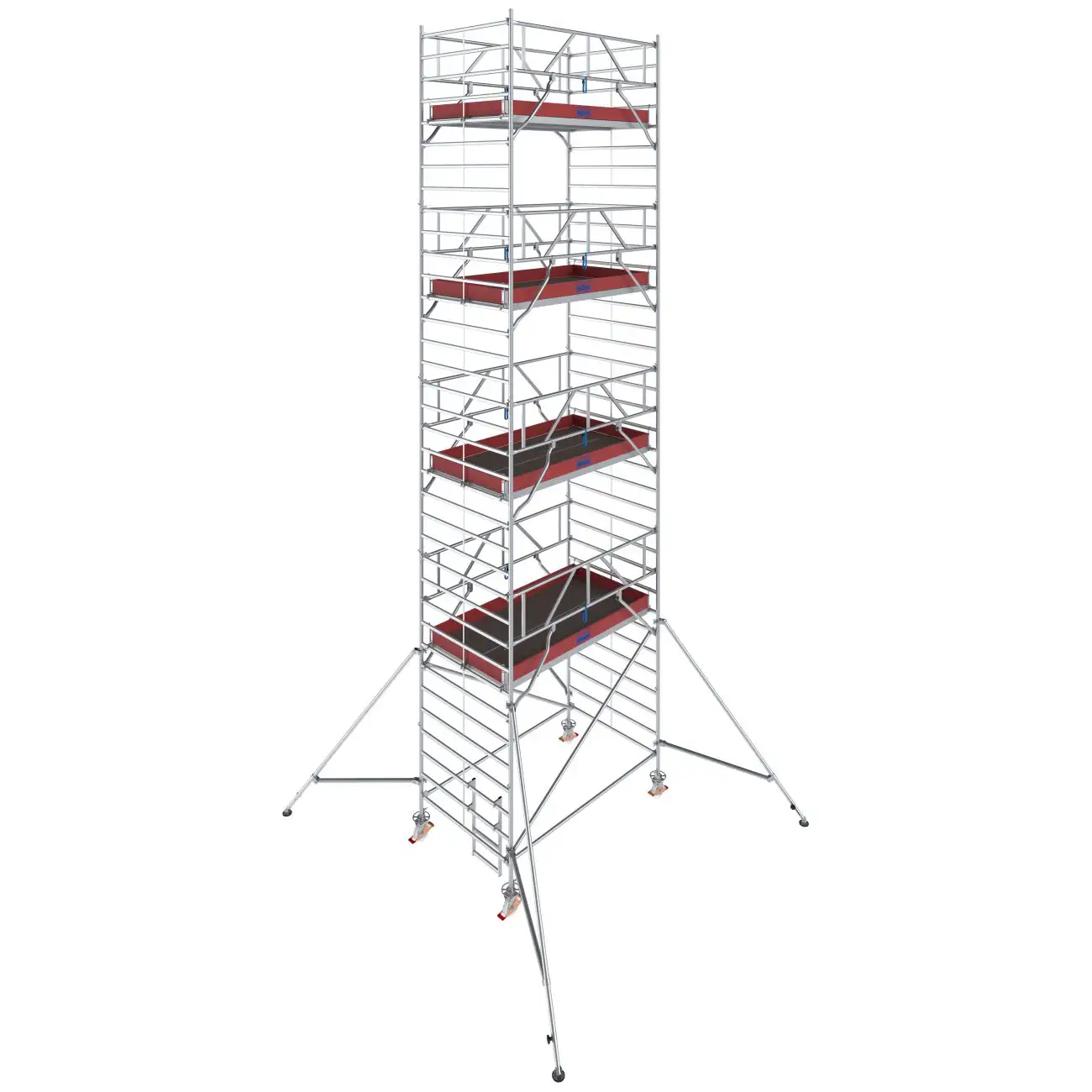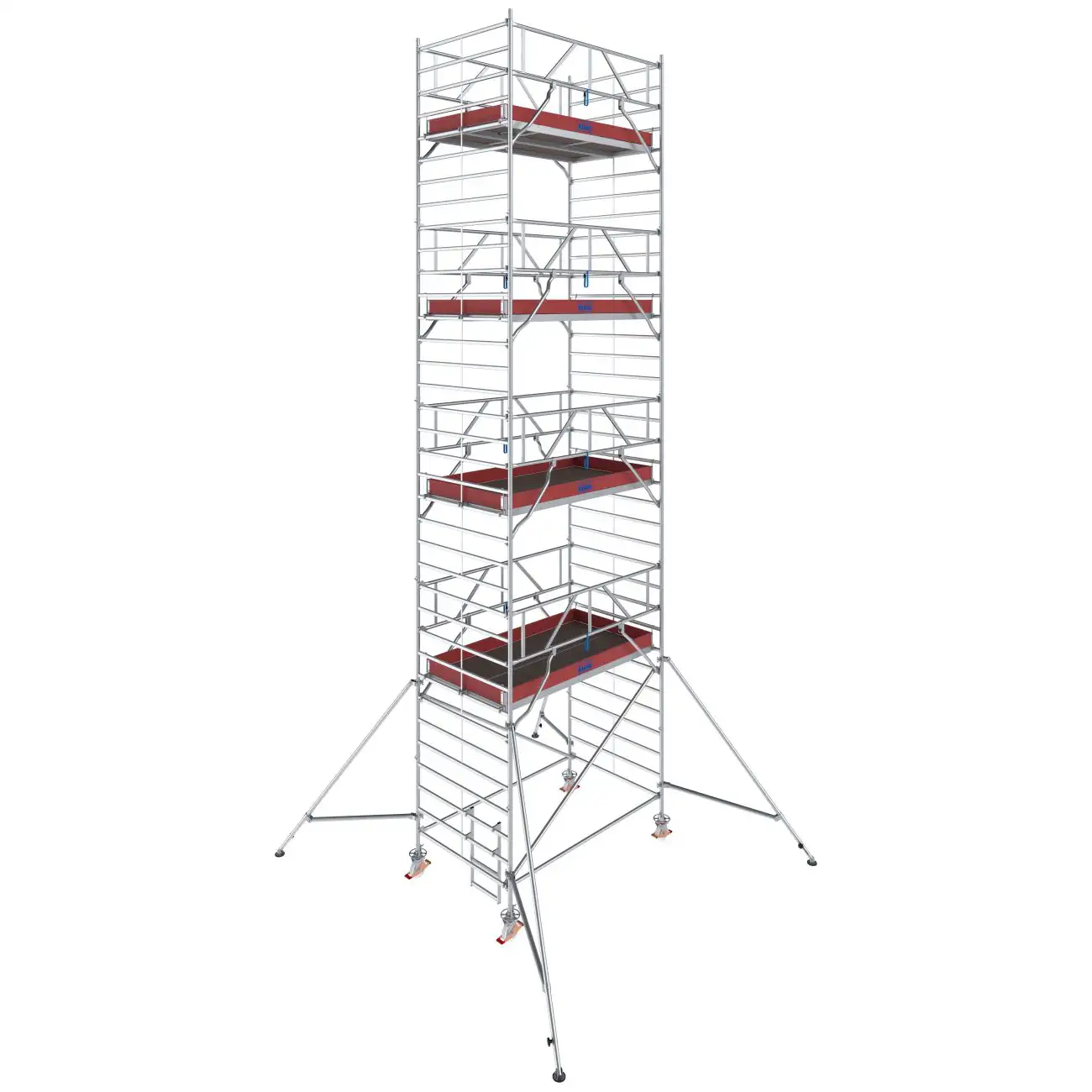 - Uniwersalne aluminiowe rusztowanie jezdne do prac prowadzonych na wysokości do 14,30 m (przy długości pola roboczego 2,00 m do 12,30 m)