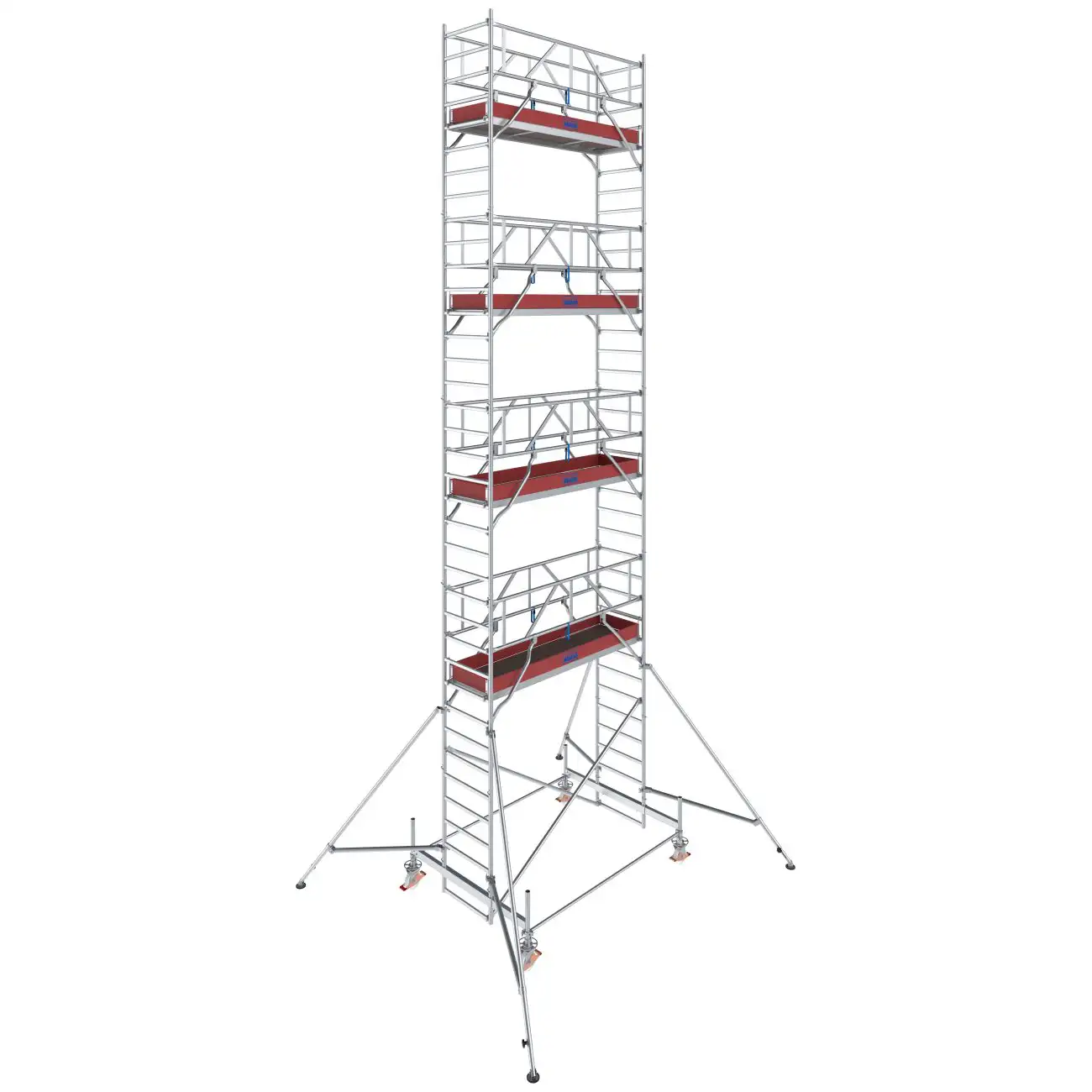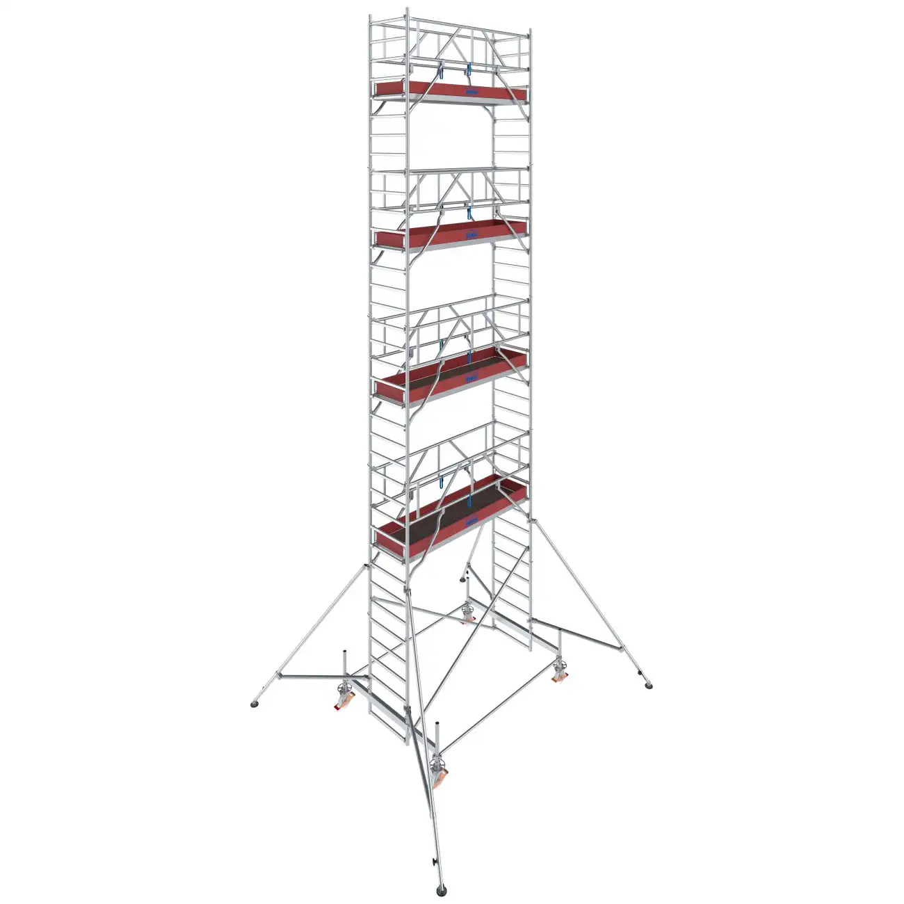 - Uniwersalne aluminiowe rusztowanie jezdne do prac prowadzonych na wysokości max. do 14,40 m (przy długości pola roboczego 2,00 m do 12,50 m)