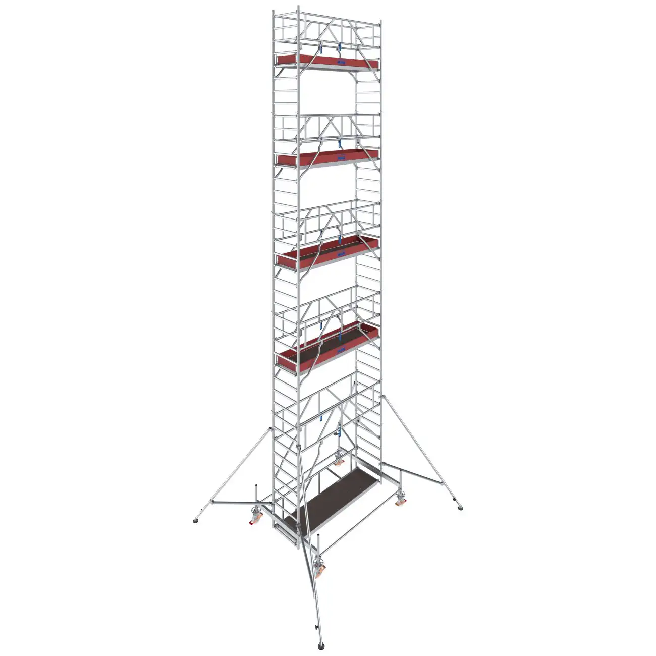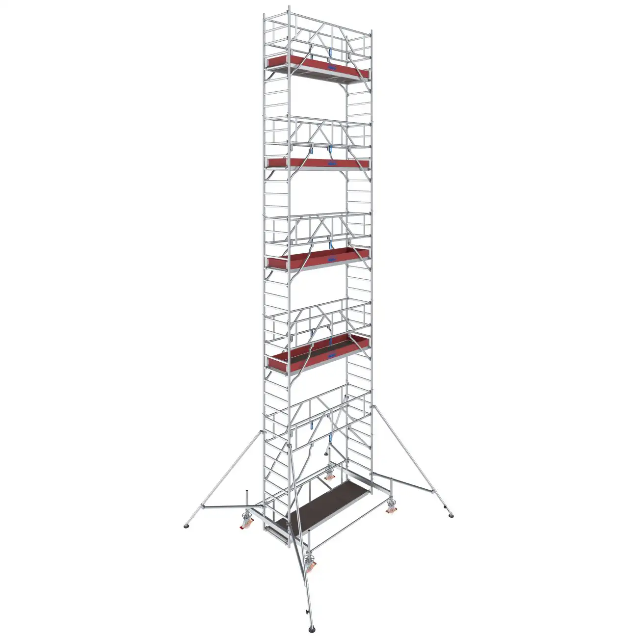 - Łatwe w montażu podpory z bezstopniową regulacją oraz teleskopową stopą (zakres regulacji do 230 mm) zapewniające dodatkową stabilizację i bezpieczne użytkowanie w konstrukcjach od wysokości roboczej 7,50 m