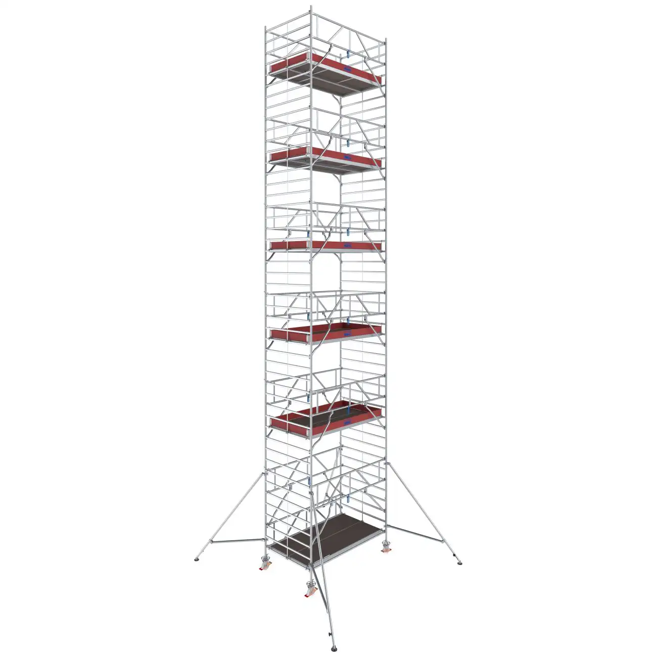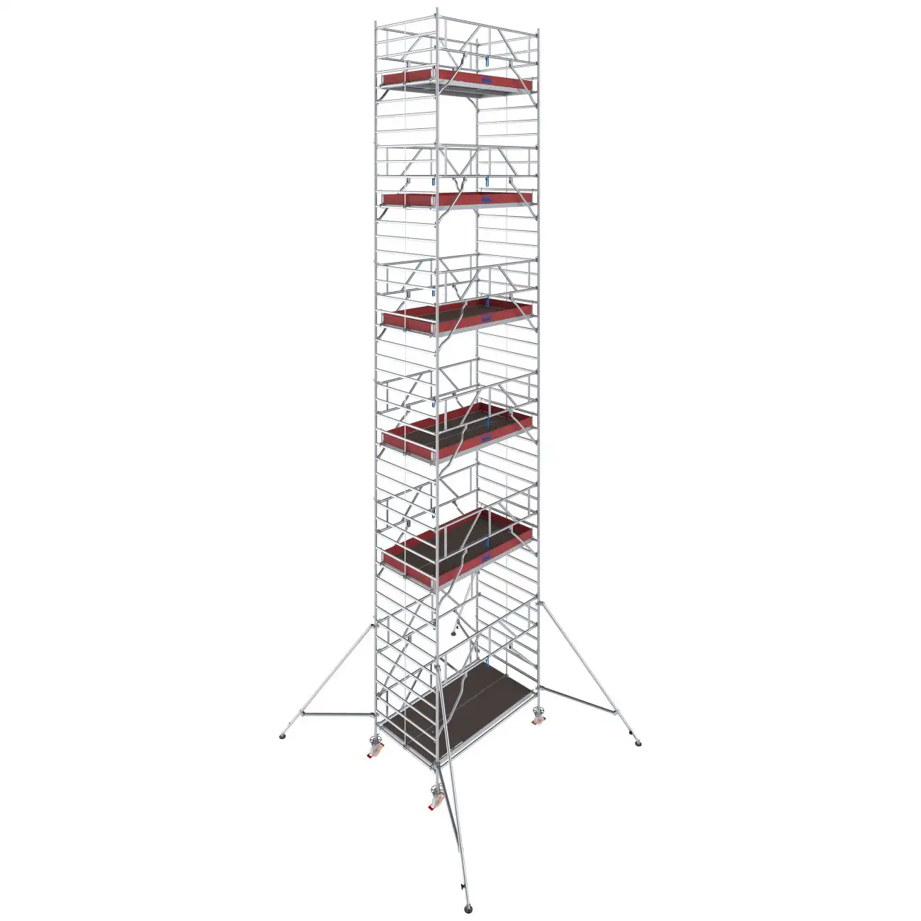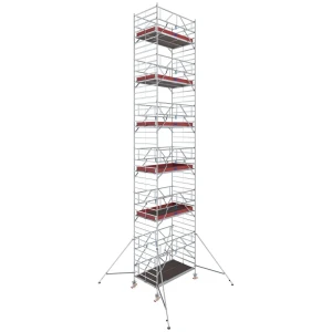- Uniwersalne aluminiowe rusztowanie jezdne do prac prowadzonych na wysokości do 14,30 m (przy długości pola roboczego 2,00 m do 12,30 m)