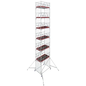Profesjonalne aluminiowe rusztowanie jezdne z podwójną powierzchnią roboczą.
