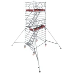Profesionalne, aluminiowe rusztowanie jezdne z komfortowym wejściem schodami i podwójną powierzchnią roboczą.