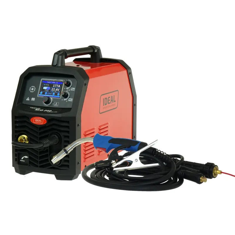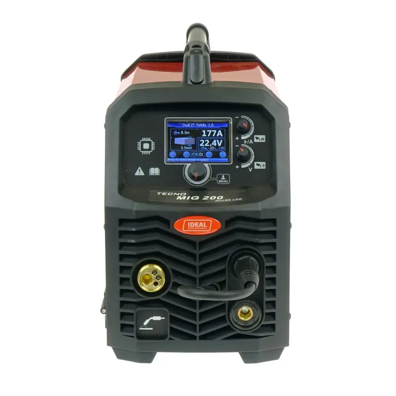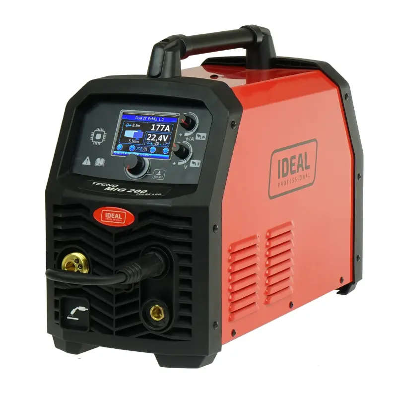 IDEAL TECNOMIG 200P PULSE to zaawansowany synergiczny półautomat inwertorowy przeznaczony do spawania metodami MIG/MAG, TIG LIFT, MMA oraz lutospawania blach ocynkowanych. Urządzenie oferuje trzy tryby spawania MIG/MAG – MIG, MIG PULS i MIG PODWÓJNY PULS – pozwalające uzyskać wyjątkową jakość spoiny przy minimalnej ilości odprysków.