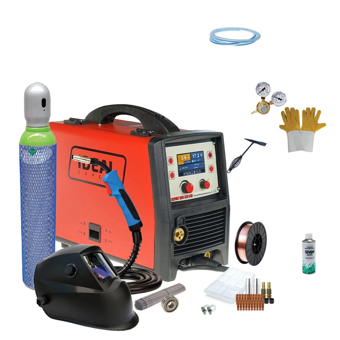 IDEAL PROFESSIONAL EXPERT MIG 215 LCD MIG/TIG/MMA SYNERGIC ALU jest inwertorowym synergicznym półautomatem spawalniczym przeznaczonym do spawania łukowego metodą MIG/MAG, TIG LIFT, MMA oraz FLUX.