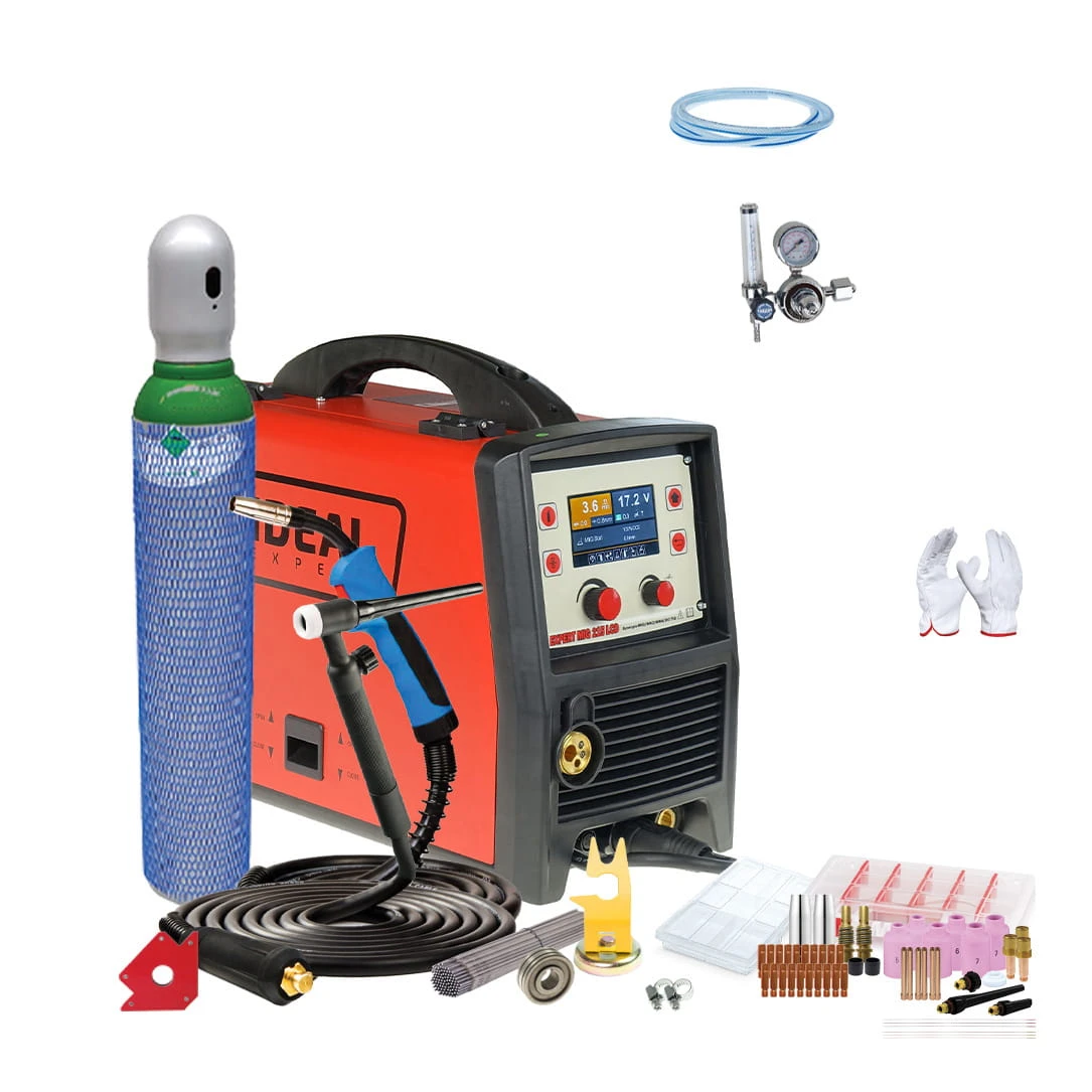 IDEAL PROFESSIONAL EXPERT MIG 215 LCD MIG/TIG/MMA SYNERGIC ALU jest inwertorowym synergicznym półautomatem spawalniczym przeznaczonym do spawania łukowego metodą MIG/MAG, TIG LIFT, MMA oraz FLUX.