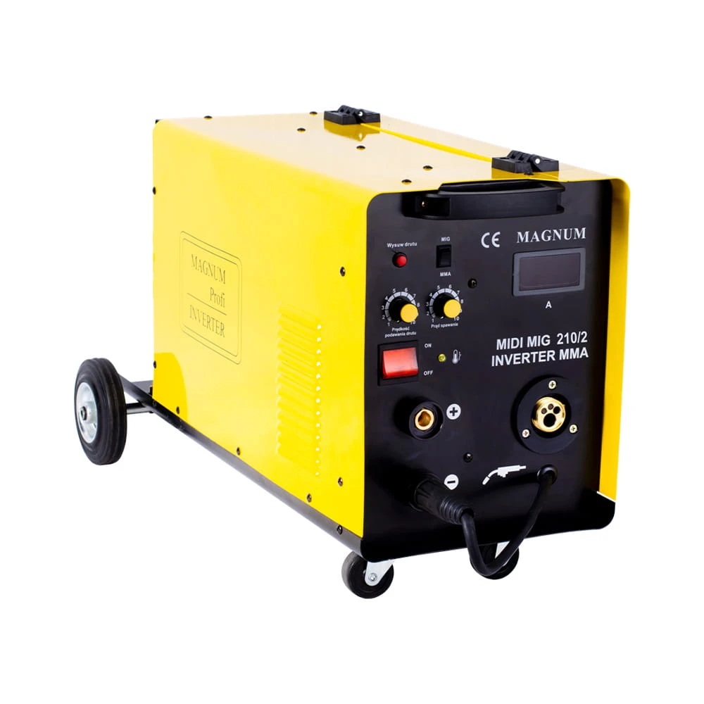 Urządzenie z serii MIDI MIG 210/2 marki MAGNUM jest półautomatem spawalniczym przeznaczonym do ręcznego, elektrycznego spawania stali niskowęglowej, niskostopowej (MAG), stali stopowych (MIG) oraz aluminium i jego stopów.