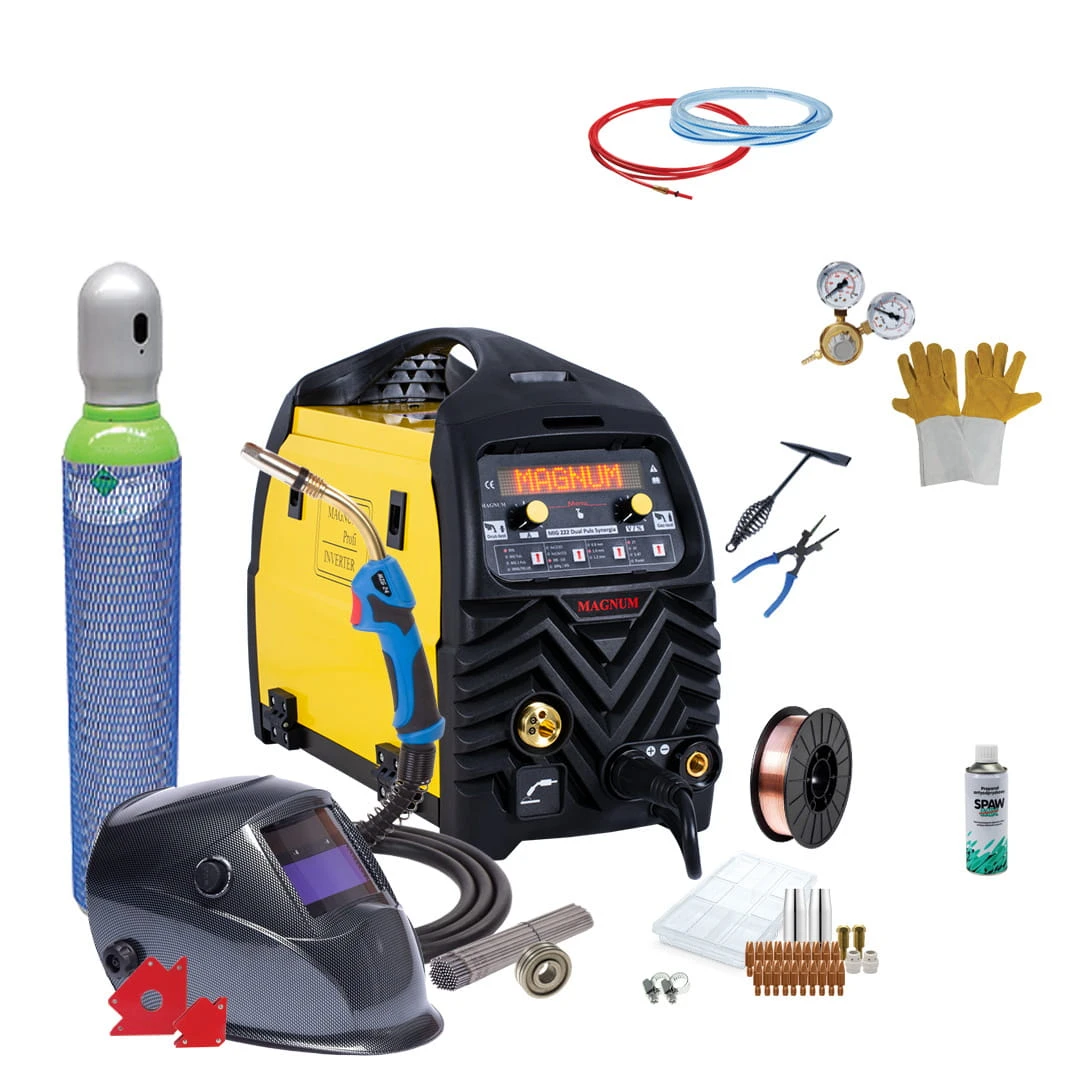 Urządzenie MAGNUM MIG 222 DUAL PULS SYNERGIA jest lekkim przenośnym półautomatem spawalniczym zasilanym z sieci jednofazowej 230V o maksymalnym prądzie spawania 200A. Spawarka MIG 222 przeznaczona jest do spawania materiałów wykonanych ze stali nierdzewnej i aluminium a także stali niskowęglowych, niskostopowych oraz stali wysoko stopowych.