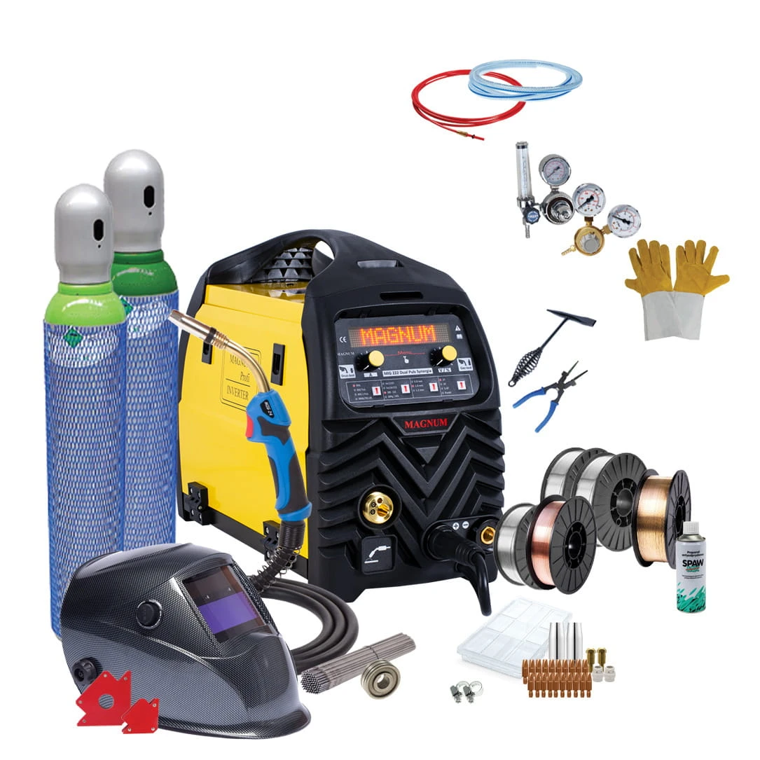 Urządzenie MAGNUM MIG 222 DUAL PULS SYNERGIA jest lekkim przenośnym półautomatem spawalniczym zasilanym z sieci jednofazowej 230V o maksymalnym prądzie spawania 200A. Spawarka MIG 222 przeznaczona jest do spawania materiałów wykonanych ze stali nierdzewnej i aluminium a także stali niskowęglowych, niskostopowych oraz stali wysoko stopowych.