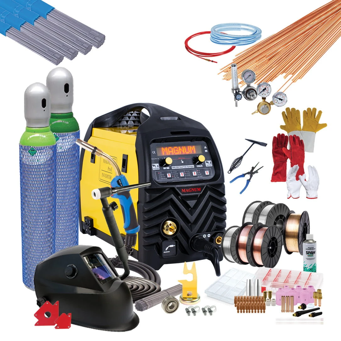 Urządzenie MAGNUM MIG 222 DUAL PULS SYNERGIA jest lekkim przenośnym półautomatem spawalniczym zasilanym z sieci jednofazowej 230V o maksymalnym prądzie spawania 200A. Spawarka MIG 222 przeznaczona jest do spawania materiałów wykonanych ze stali nierdzewnej i aluminium a także stali niskowęglowych, niskostopowych oraz stali wysoko stopowych.