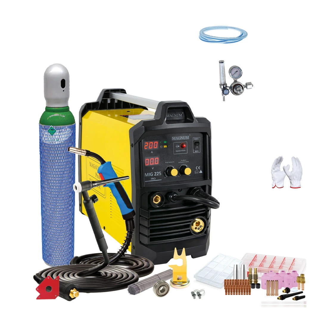 Spawarka MAGNUM MIG 225 PRO, to zawansowany technologicznie półautomat spawalniczy, przeznaczony do spawania łukowego metodą: